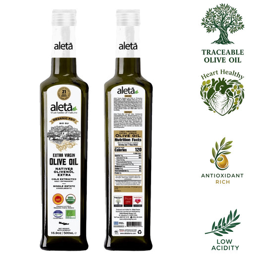 Aleta Organic & PDO Extra Virgin Greek Olive Oil, 2025 Gold Award, 17 oz. Bottle