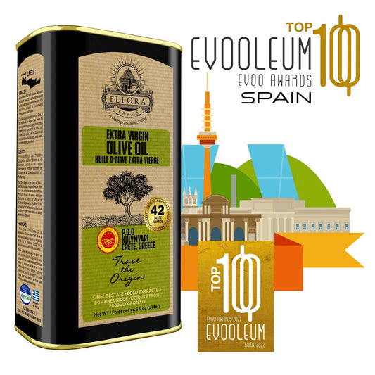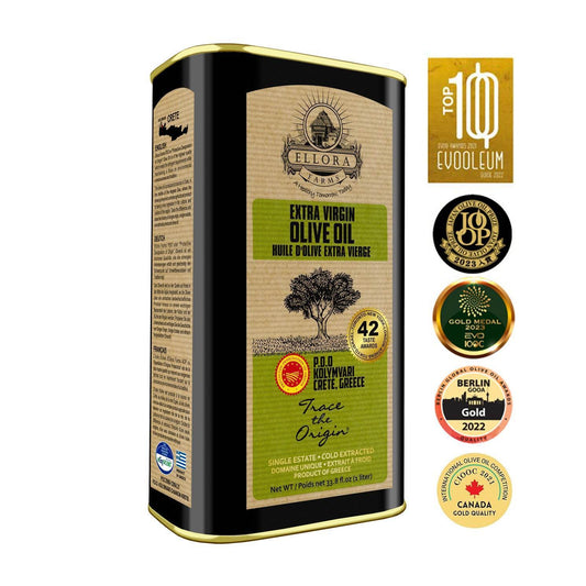 Ellora PDO SITIA & KOLYMVARI Estates Extra Virgin Greek Olive Oil, 1 Ltr Tin, 33.8 oz. Combo