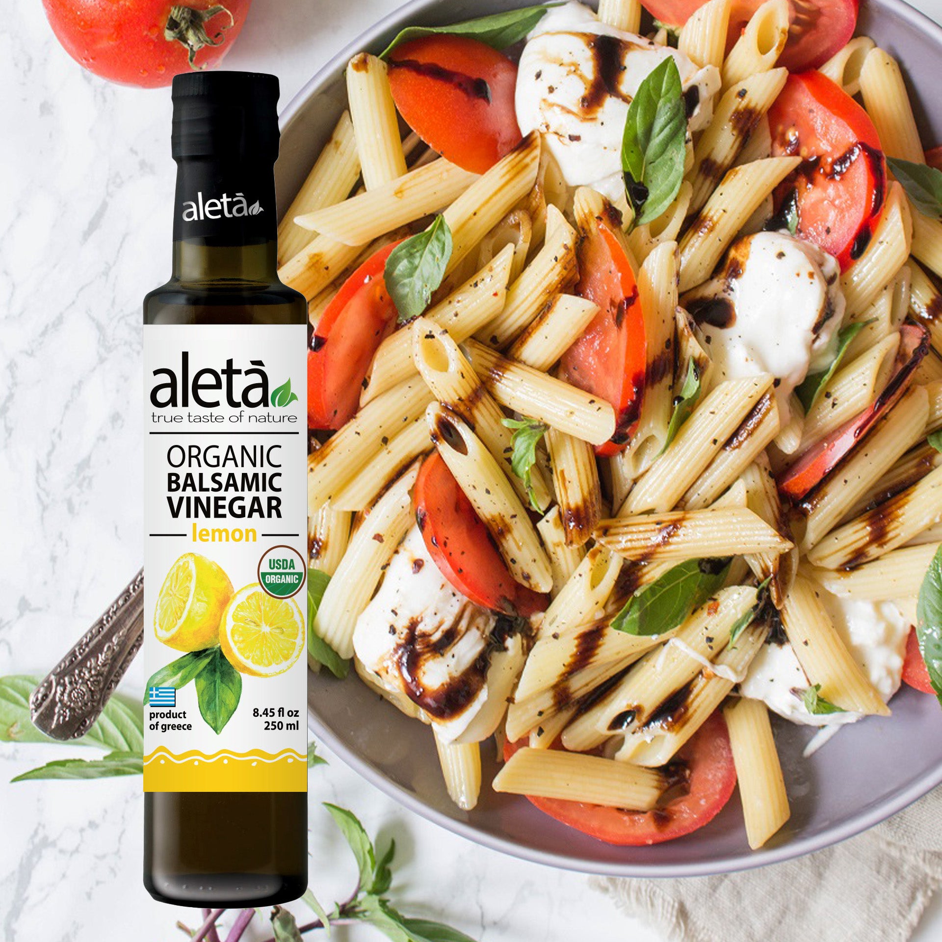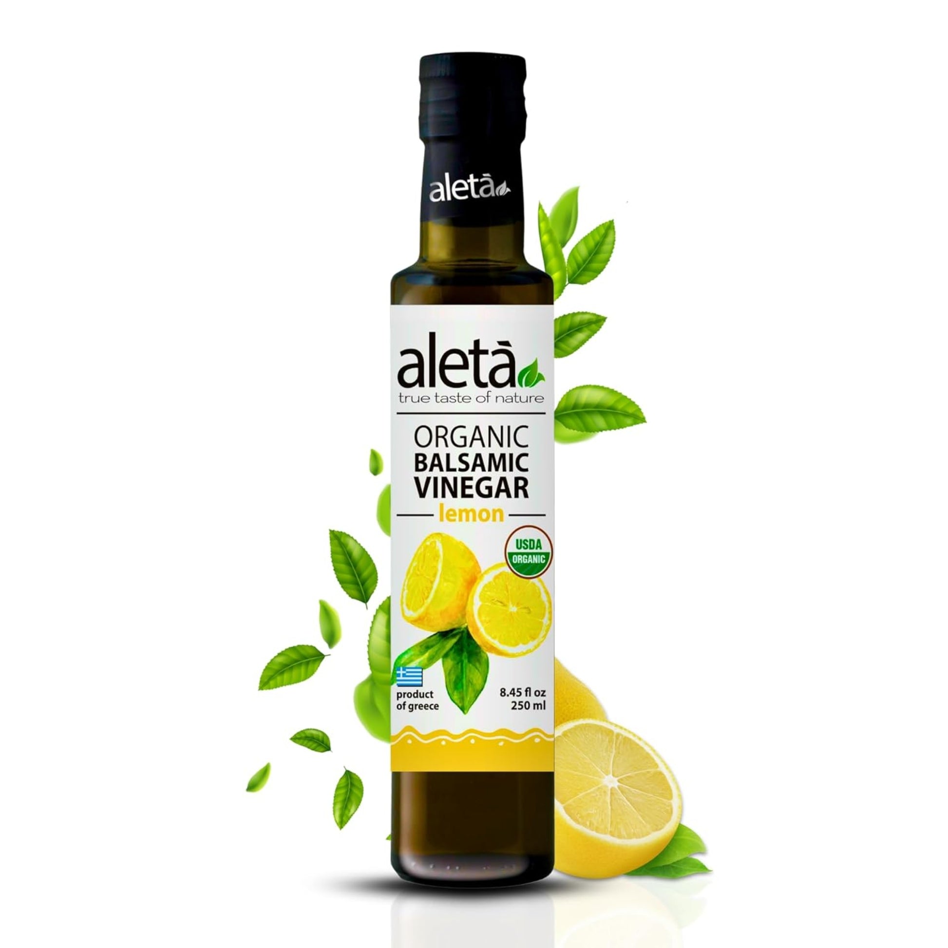 Elevate your culinary creations with Aleta Organic Lemon Infused Balsamic Vinegar – the natural, chef-approved choice for those who love to experiment with flavors.