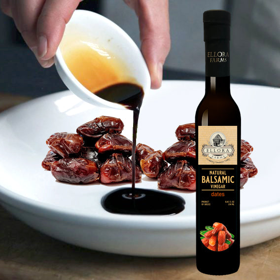 Elevate your dishes with our award-winning Dates Infused Aged Balsamic Vinegar! Crafted in Greece, this thick and smooth vinegar is infused with real date syrup for a rich and unique flavor. And the best part? It's free from added sugars, non-GMO, and gluten-free. Indulge in a healthier and tastier option for all your dishes.