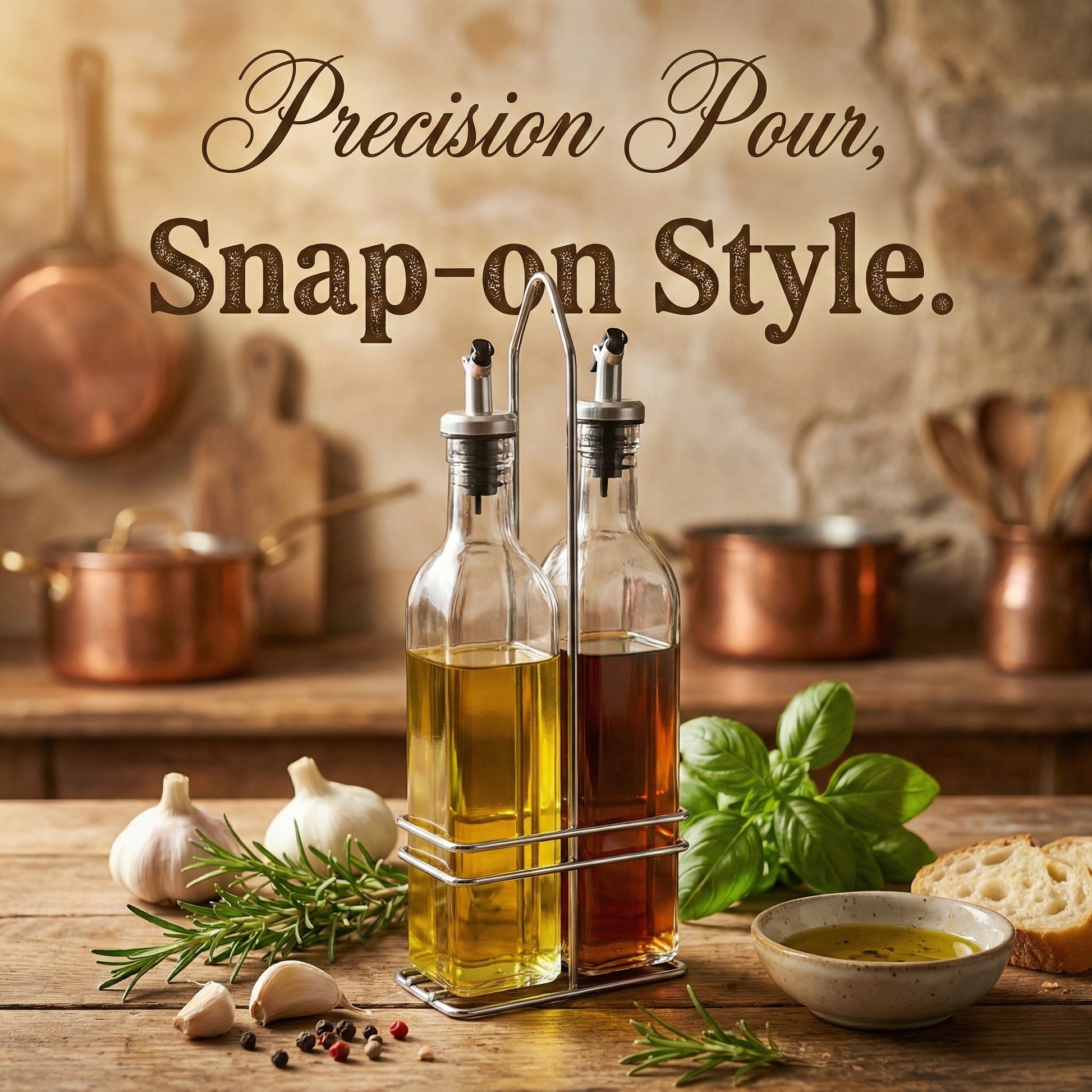 Upgrade your kitchenware with the Venus Chef Cruet Glass Bottle Set! These elegant bottles, featuring the Ellora Farms brand, not only add style to your kitchen but also come with a gravity pourer for effortless dispensing of oil and vinegar. Each bottle holds 16 fl oz, making it perfect for daily use.