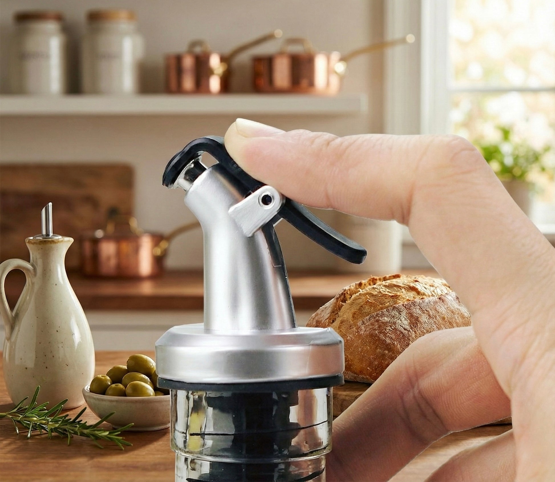 Ideal Oil & Vinegar bottles set for kitchen, gravity lid opens and closes automatically makes it easy to dispense oil with appropriate amount, get less oil use and healthier eating. Made of premium durable BPA free rubber stoppers and equipped with a food-grade, clear strong glass. One-Hand operation and Easy-Grip modeling design convenient to use for dispensing cooking oil, dressing and vinegar. Non-drip pour spout keeps the bottle and table clean. Classic and elegant look befitting any respectable kitchen and it also rightly fits other different occasions, such as: indoor cooking, outdoor barbecue etc.